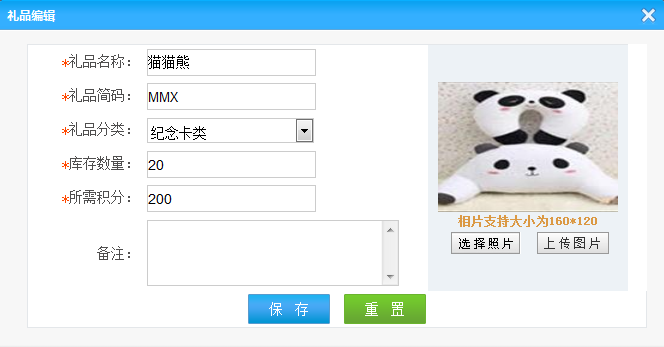禮品名稱:添加禮品的禮品名稱