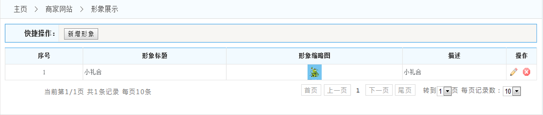 1.列表:形象展示列表 展示了在系統(tǒng)中所有的形象展示