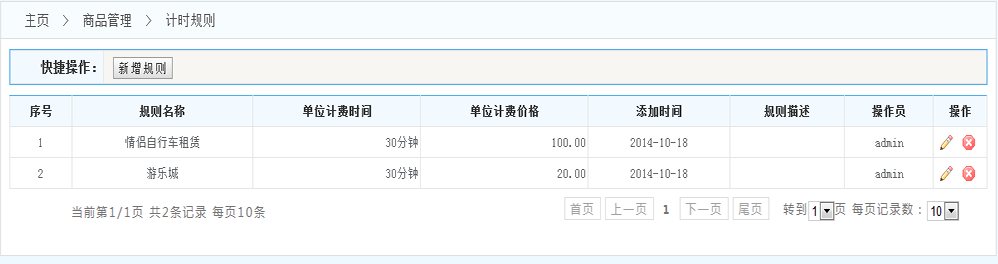 規(guī)則列表:展示系統(tǒng)內(nèi)設(shè)置的所有的規(guī)則 (操作一欄 可以對(duì)每條規(guī)則進(jìn)行修改和刪除 )