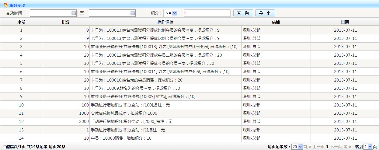 :查詢會(huì)員積分變動(dòng)情況并可以導(dǎo)出Excel文檔
