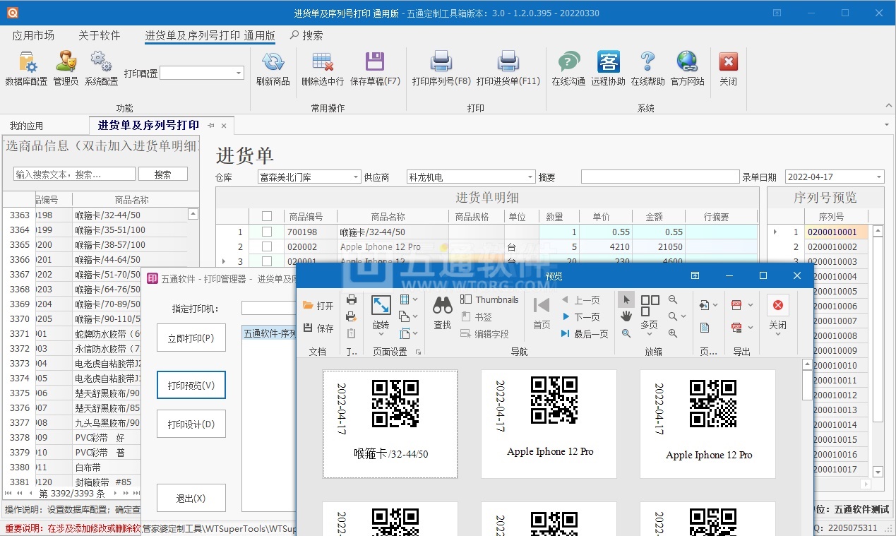 【五通定制管家婆輝煌應(yīng)用】序列號(hào)批量生成打印應(yīng)用,填寫(xiě)數(shù)量自動(dòng)生成對(duì)應(yīng)序列號(hào),及序列號(hào)批量打印